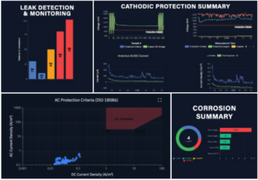 Remotely monitor the operability and effectiveness of existing and newly installed cathodic protection (CP) systems. Measures the tanks response to AC/DC fields and impressed current CP systems.